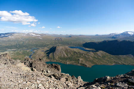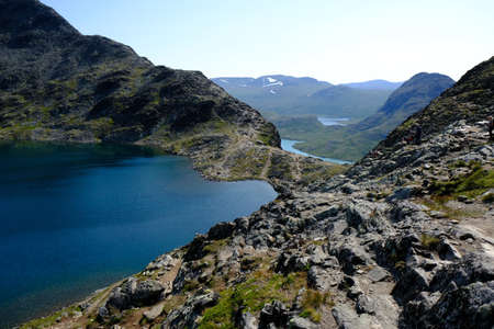 View towards the Gjende lake and the surrounding mountains in Jotunheimen national park in norway The Gjende is supposed to be one of the most beautiful lakes in Norway