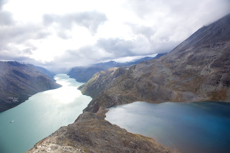 Beautiful view of the Gjende glacial lake in Jotunheimen National Park, Norway