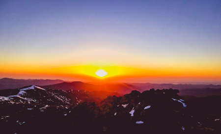 Sunset in the mountains of the Alps. View from the top of the mountain.
