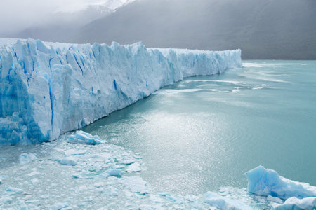 Amazing view of Perito Moreno glacier, blue ice burg glacier in Los Glaciares National Park, Santa Cruz, southern Patagonia, Argentina, South America.