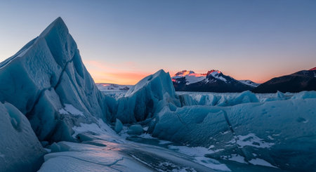 Serene Majestic Glacier Ridge Sunrise Soft Blue Tones Alpine Mountain Scenery
