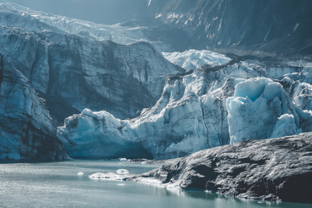 Captivating view of the glacier and mountains in sunlight