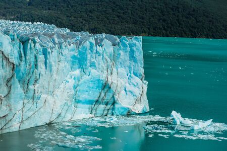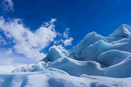 Perito Moreno Glacier in Los Glaciers National Park in Patagonia, Argentina. Blue Ice Glacier, Ancient Ice, El Calafate, Patagonia. Blue ice close up, ice background.