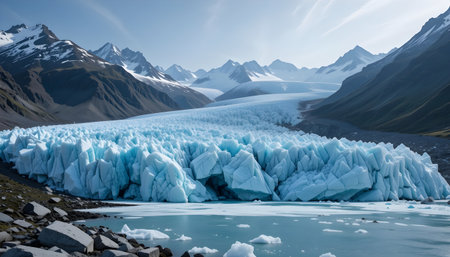 AI Generated. crucial function of glacier water in supporting ecosystems and supplying freshwater resources symbolizing vital importance of these pure waters