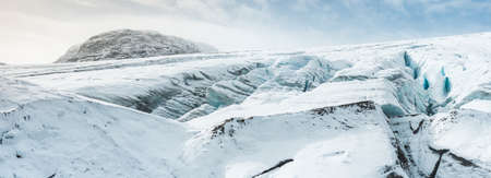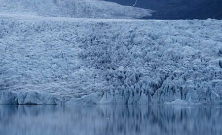 Glacier in Iceland, Pure Blue Ice at Winter Season, Frozen Beautiful Nature Landscape in North Europe Country. Global Warming and Climate Change Concept. Vatnajokull Glacier