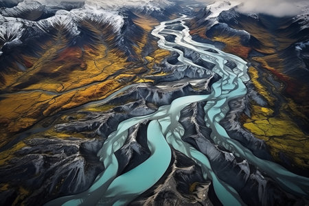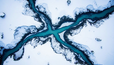Stunning aerial view of glacial rivers flowing through iceland s majestic landscape