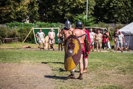 Gladiator training ground hosts Roman warriors practicing