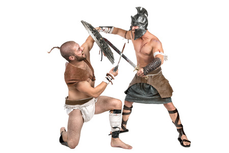 Gladiators fighting isolated in a white background