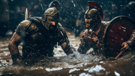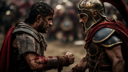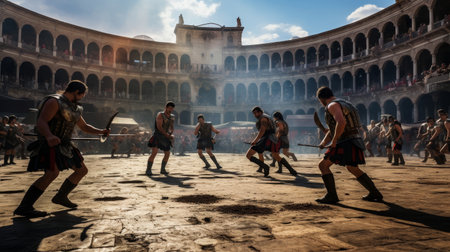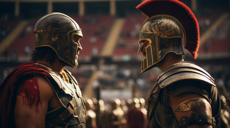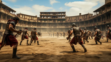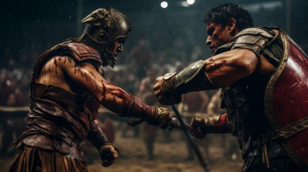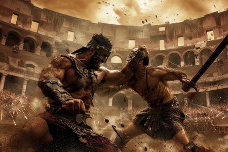 gladiators ed battle, each fighting for their life and the glory of rome, created with generative ai