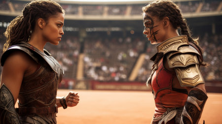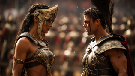 Female gladiatrix challenging gender norms in arena