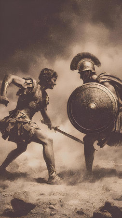 Moment frozen: gladiators poised for battle
