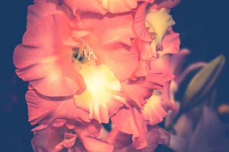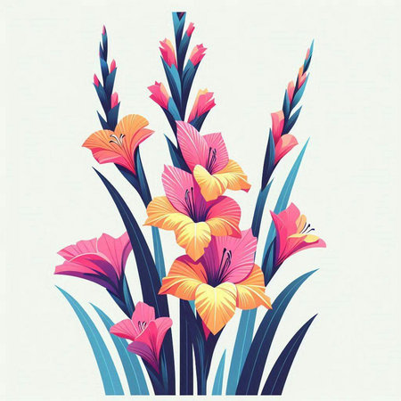 Gladiolus flowers vector illustration in retro style. Floral background.