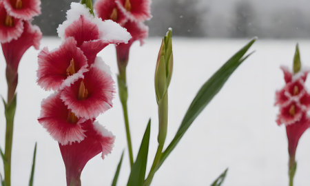 Gladioli flower beautifully bloomed with natural background. Created by Generative AI.