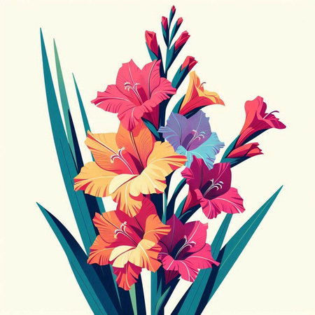 Bouquet of multicolored gladiolus flowers. Vector illustration.