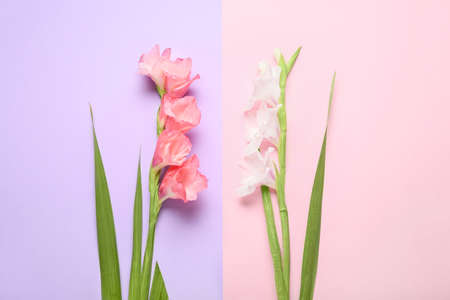 Beautiful gladiolus flowers blooming in the garden, stock photo