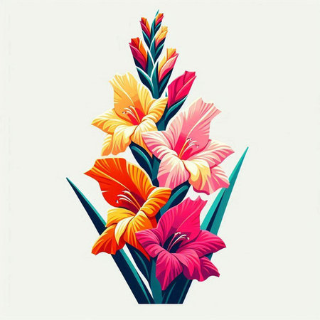 Bouquet of gladiolus flowers on white background. Vector illustration.