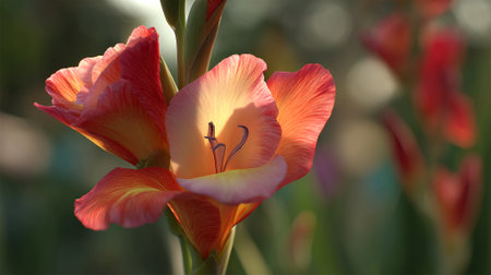 Stunning Gladiolus Blossom Radiating Warmth in Soft Sunlight