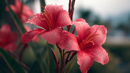 Dew-Kissed Red Canna Lilies Glowing in Soft, Dreamy Light