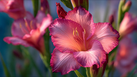 Radiant Pink Gladiolus Blossom Unveiling Delicate Beauty in Natural Light