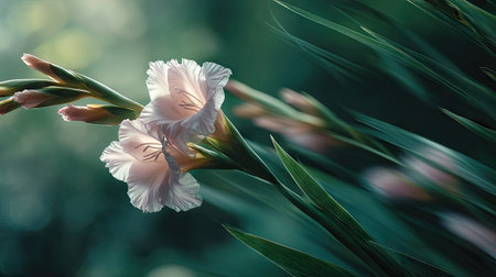 the gladiolus stands tall against a soft, muted vintage background, its delicate petals and slender stem evoking a sense of simple elegance, perfect for adding a touch of understated sophistication to any space, with its minimalist charm and nostalgic flair. ai generated