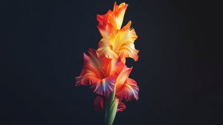 Stunning arrangement of vibrant gladiolus flowers showcasing bright orange and yellow petals against a dark background, perfect for decorative or artistic projects.