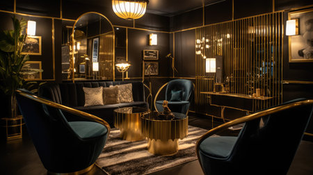 Inspiring office interior design Art Deco style Lounge featuring Geometric patterns architecture. Generative AI AIG 31.
