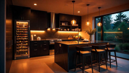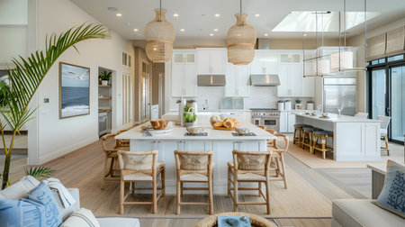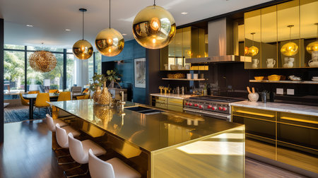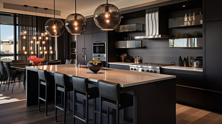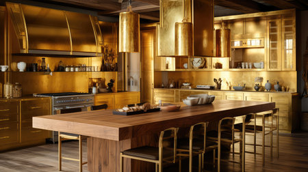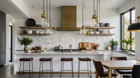 Warm kitchen gathering modern home interior design bright atmosphere wide angle culinary joy