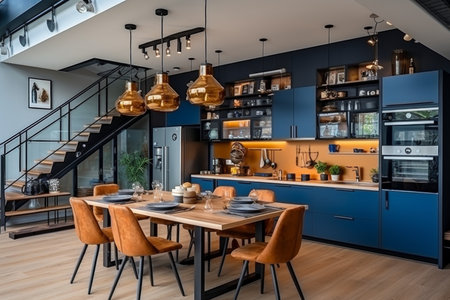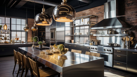 Contemporary Interior Design Loft Apartment with Kitchen Generative AI