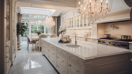 luxurious white shiny illustration kitchen stainless, steel crystal, chandelier elegant luxurious white shiny
