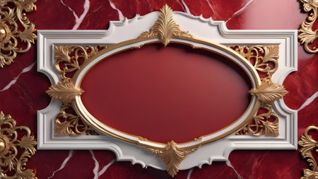 3d illustration of red marble background with golden frame and decorative elements. generated by AI