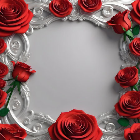 3d render, white frame with red roses, blank space for text. generated by AI