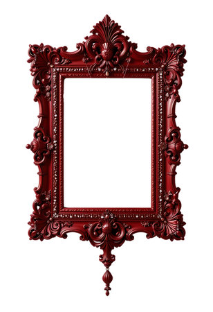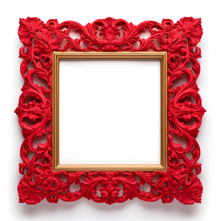 Picture frame with red ornament isolated on white background. 3d rendering