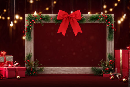 Red christmas photo frame. Ready for your text or picture