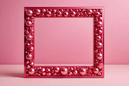 Pink frame with pink pearls on a pink background. 3d rendering