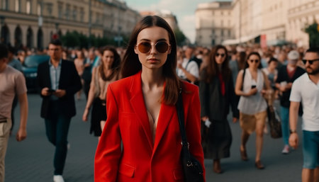 Young adults walking in the city, fashionable elegance generated by artificial intelligence