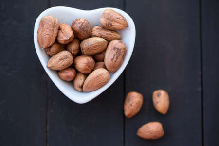 Close up of nuts. Dark food. Concept of slow and healthy food. Autumn-winter seasonal meal
