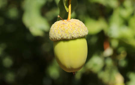 Fresh and young acorn on the tree