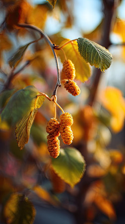 ripening spring buds and catkins on tree branches