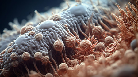 An AI generated illustration of a colony of bacteria, magnified to show the small details of the organisms