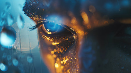Close-Up of Blue Eye in Artistic Lighting with Reflections
