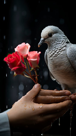 Decorative birds flying in an artistic, festive atmosphere with warm lighting
