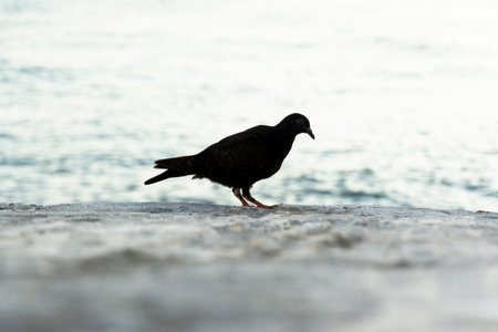 A selective focus shot of a thrush standing on the edge of a wall during day time