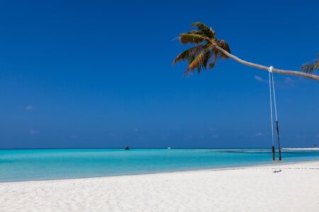 View of the paradise sandy beach, Maldives. Copy space for text