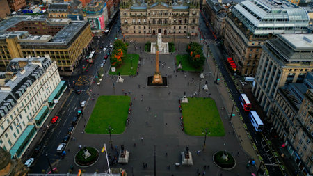 George Square in Glasgow City Center - aerial view - GLASGOW, SCOTLAND - OCTOBER 04, 2022
