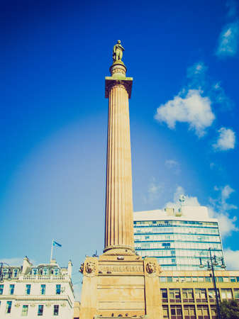 Vintage looking Sir Walter Scott column in George Square, Glasgow