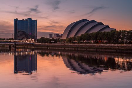 GLASGOW, SCOTLAND - AUGUST 15, 2017 - Night view of the modern concert hall of Glasgow and the best known building as Armadillo