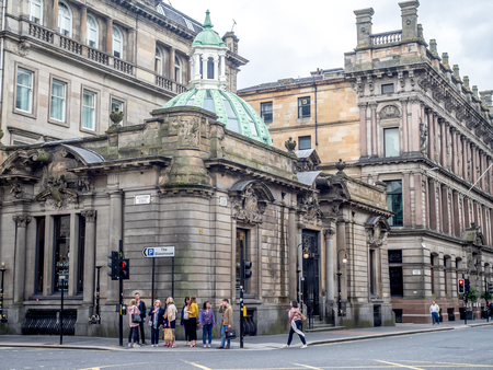 GLASGOW, SCOTLAND - JULY 21: Beautiful victorian architecture on Ingram Street on July 21, 2017 in Glasgow, Scotland. Glasgow is known for its Victorian architecture from the 19th century.