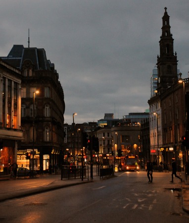 View from Glasgow city center, main steet. Traveling in Europe