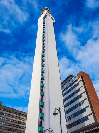 BIRMINGHAM, UK - SEPTEMBER 25, 2015: BT Tower is the telecommunications tower of British Telecom and the tallest building in Birmingham (HDR)