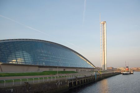 the Science Mall and the Glasgow Tower. These two building are a part of the Glasgow Science centre that sits on the south bank of the River Clyde in Glasgow.